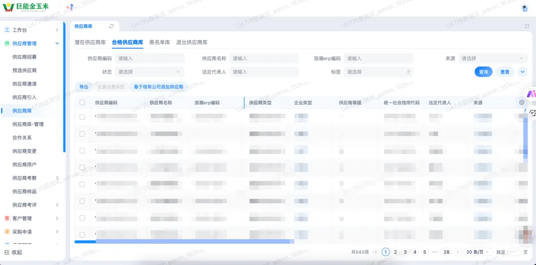 图 系统“供应商管理-供应商库”页面
