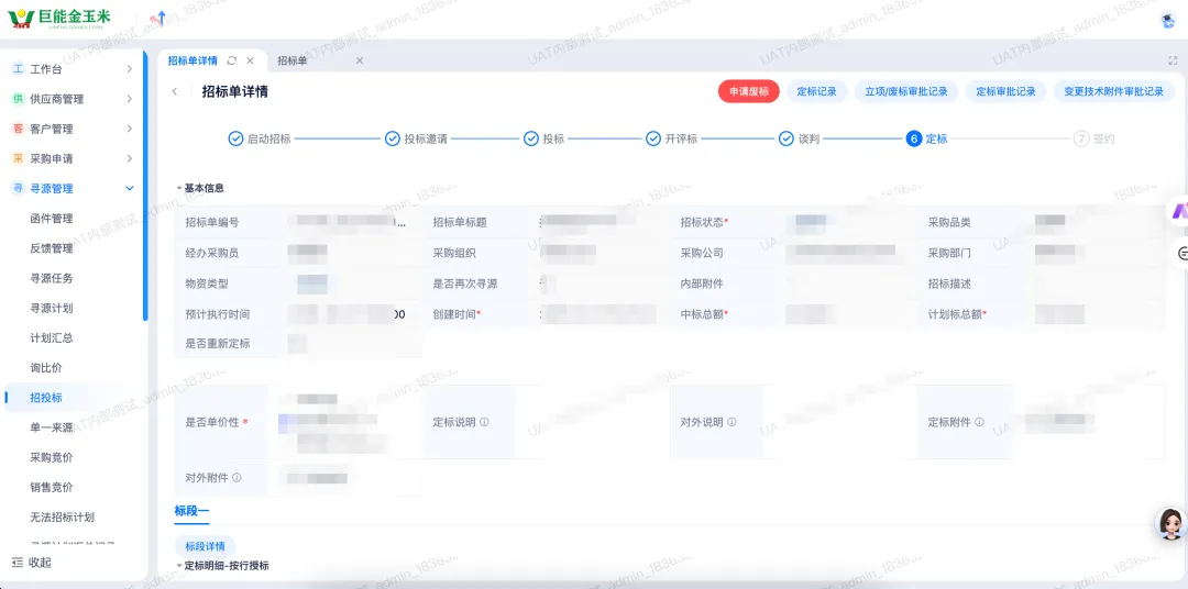 图 系统“寻源管理-招投标”页面