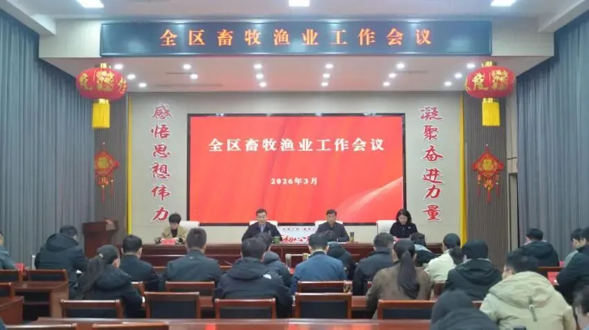 会议强调,2026年是贯彻落实“十五五”规划的开局之年,做好全区畜牧渔业工作意义重大。全区畜牧渔业系统紧扣区委“1511”总体工作思路,聚焦主责主业,坚持锐意改革、狠抓落实,不断实现争先进位、追赶超越,继续书写高质量发展的崭新篇章。一要强化政治站位,在“走在前、挑大梁”中践行使命担当。要深学细悟上级精神,在服务大局中找准定位,以常态化推进干部思想能力作风建设实现思想破冰、行动破局。二要聚焦履职担当,在“谋发展、开新局”中永葆初心本色。要增强“知责于心、担责于身、履责于行”的行动自觉,以“开局就要奔跑”的劲头,重点推动产业发展提档升级、绿色转型蝶变升级、疫病防控精准有力、行业监管保障到位、渔业全面振兴。三要锤炼过硬作风,在“优服务、惠民生”中当先锋作表率。要健全激励担当的机制,持续优化为企为民服务,坚决杜绝群众身边不正之风,以“骏马疾驰”的奋进姿态、务实有效的举措护航“十五五”良好开局。