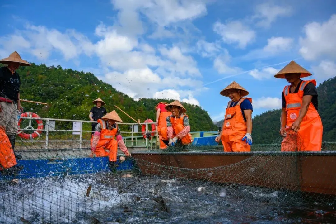 在筑牢生态屏障的同时,市公用集团还着力将生态优势转化为发展优势,全力打造“以渔富民”的共富样板。围绕生态增养殖、苗种投放等关键环节,集团不断提升规范化水平和鱼类品质,成功培育了“峃”牌、“珊溪水库鱼头”等有机鳙鱼品牌,产品年销量超30万斤,年收益近500万元。更重要的是,集团积极践行社会责任,每年将部分渔业收益用于扶持珊溪水库库区86个经济薄弱村,并有效带动了当地村民就业,真正实现了生态保护与共同富裕的深度融合。