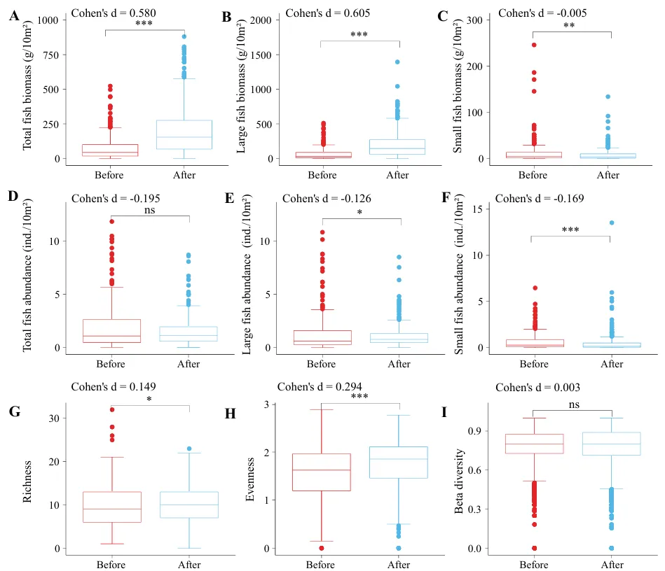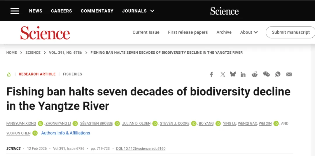 该研究基于2018-2023年的系统性长期监测数据,从鱼类个体大小、种群规模以及群落多样性等多个角度,全面解析了“长江十年禁渔”政策实施前后干流鱼类的动态变化。首次科学证实长江十年禁渔政策有效遏制了鱼类资源长期衰退趋势,标志着我国在大江大河生态保护与修复研究领域取得重大突破,为全球大型河流生态系统治理提供了关键依据与中国方案。