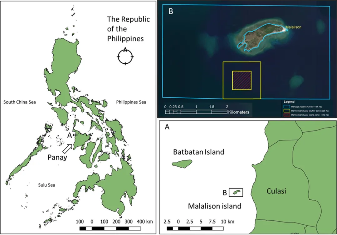 Fig. 1 Map of study site Malalison Island, Culasi, Antique featuring the Managed Access Area + Sanctuary