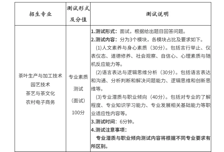 3.茶叶生产与加工技术、园艺技术、茶艺与茶文化、农村电子商务、酒店管理与数字化运营、餐饮智能管理专业考生