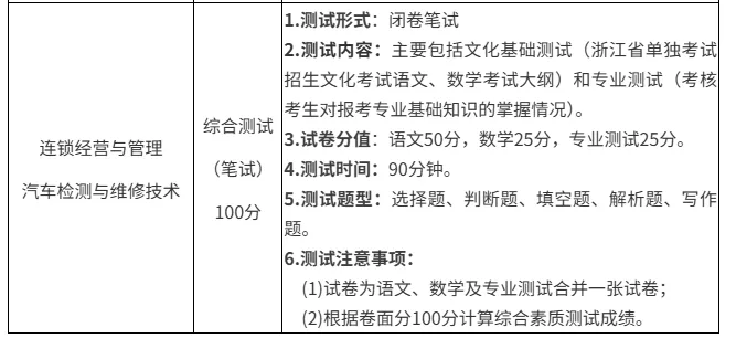 1.连锁经营与管理、汽车检测与维修技术专业考生