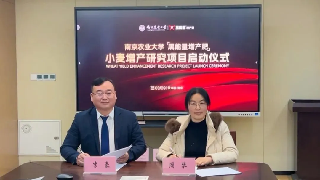 3月9日下午,南京农业大学&“黑能量增产肥”小麦增产研究项目签约仪式在南京农业大学隆重举行。该项目旨在通过产学研深度融合,探索和挖掘“黑能量增产肥”在小麦增产背后的效果验证和机理研究,为我国粮食单产提升提供科技支撑。