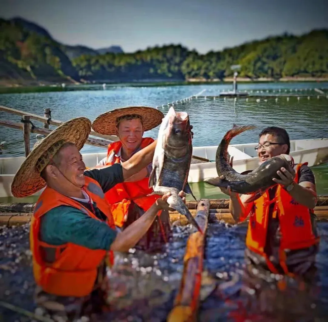 在筑牢生态屏障的同时,市公用集团还着力将生态优势转化为发展优势,全力打造“以渔富民”的共富样板。围绕生态增养殖、苗种投放等关键环节,集团不断提升规范化水平和鱼类品质,成功培育了“峃”牌、“珊溪水库鱼头”等有机鳙鱼品牌,产品年销量超30万斤,年收益近500万元。更重要的是,集团积极践行社会责任,每年将部分渔业收益用于扶持珊溪水库库区86个经济薄弱村,并有效带动了当地村民就业,真正实现了生态保护与共同富裕的深度融合。