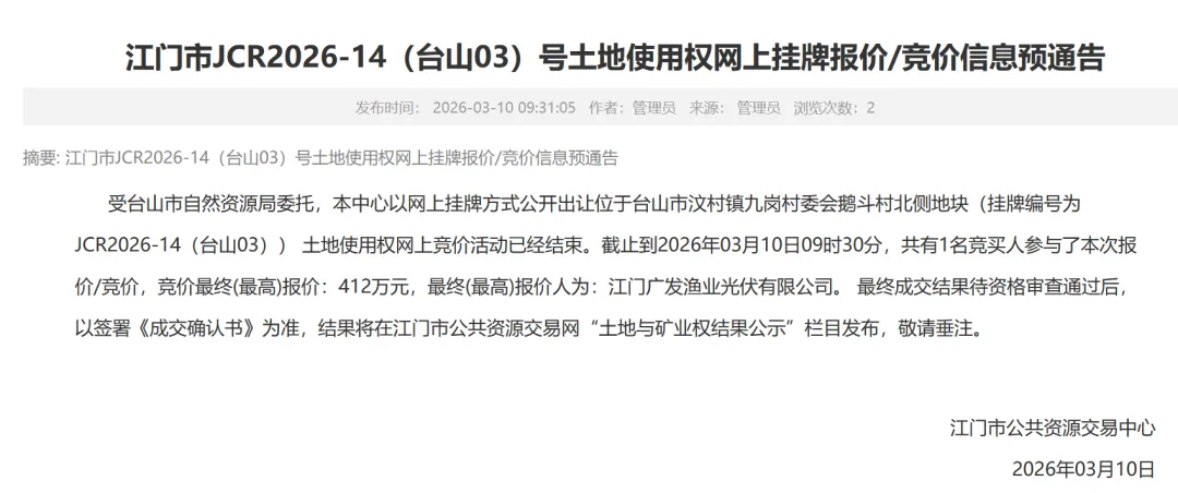 江门市JCR2026-14(台山03)号地位于台山市汶村镇九岗村委会鹅斗村北侧地块,土地用途为供电用地;