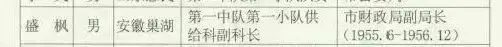 前几天,一位知识渊博的前辈在评论区提醒,盛枫可能是南下干部,于是在温州南下干部名单中,我看到了盛枫的名字。根据资料显示,盛枫,男,来自安徽巢湖,南下时担任第一中队第一小队供给科副科长,1955年6月至1956年12月任温州市财政局副局长。