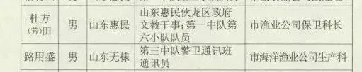 杜方(芳)田,男,山东惠民人,南下前为山东惠民伙龙区政府文教干事,担任第一中队第六小队队员,后来在温州海洋渔业公司担任保卫科长。