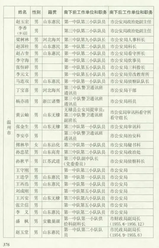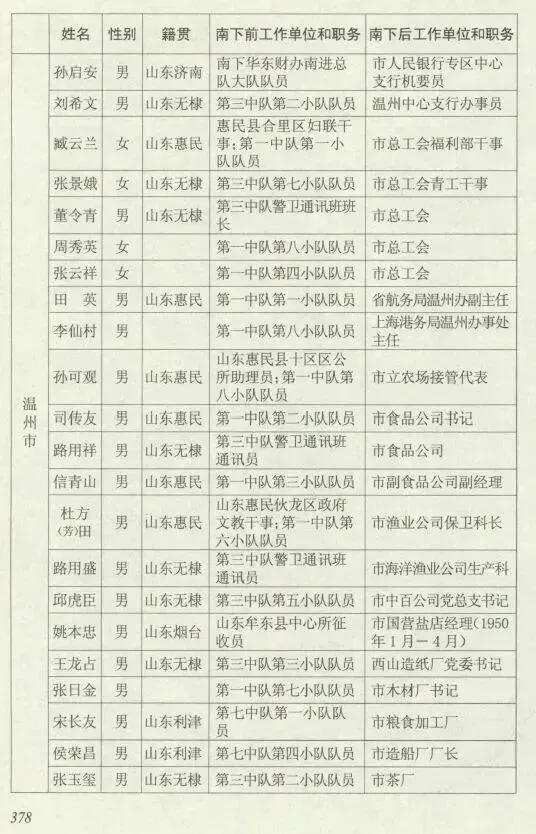 附录:南下干部入浙江温州人员名单(部分)