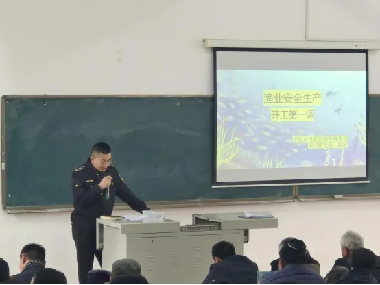 春启新程,复工复产正当时。为切实防范节后渔业生产安全风险,层层压实渔业安全生产责任,引导广大渔业从业人员迅速收心归位、绷紧安全生产之弦,近日,招远市自然资源和规划局联合辛庄镇政府等相关部门,统筹开展渔业安全生产“开工第一课”专题培训活动,辖区渔船船东、船长及养殖企业从业人员全员覆盖,以“开工即严、起步即稳”的硬核姿态,为全年渔业安全生产工作筑牢坚实根基。