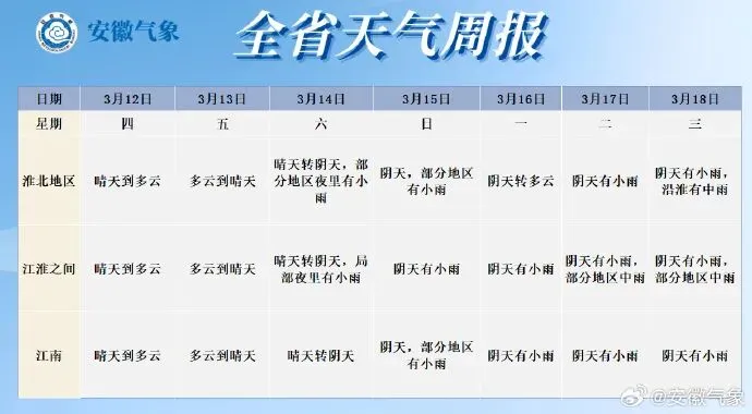 12-13日全省无降水。14-19日我省多降水过程。14-15日有一次弱冷空气活动,15日后受降水影响最高气温普遍低于15℃。