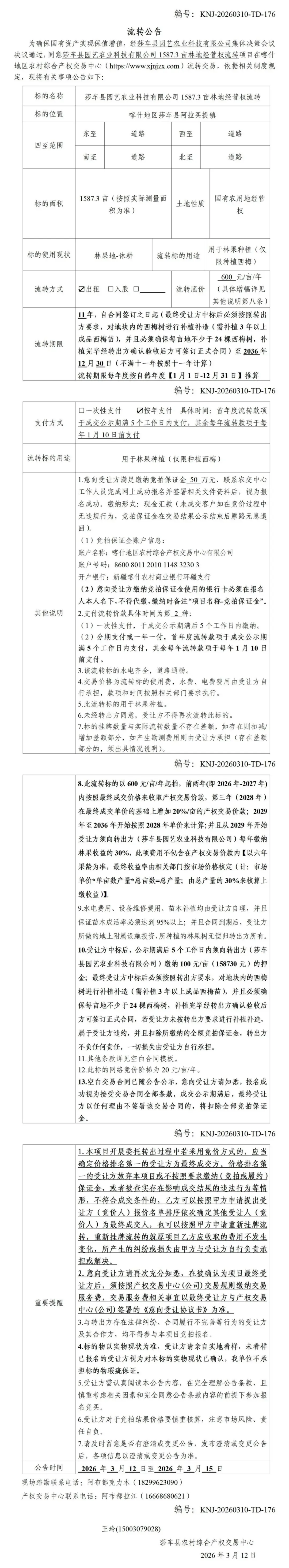 喀什地区丨莎车县园艺农业科技有限公司1587.3亩林地经营权项目流转公告
