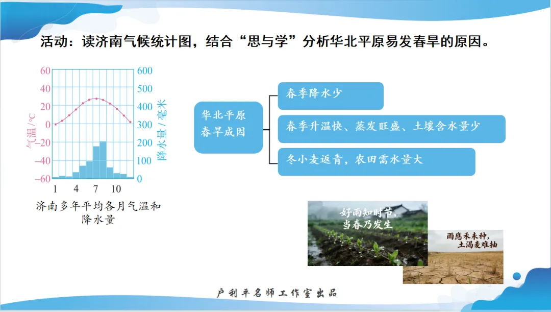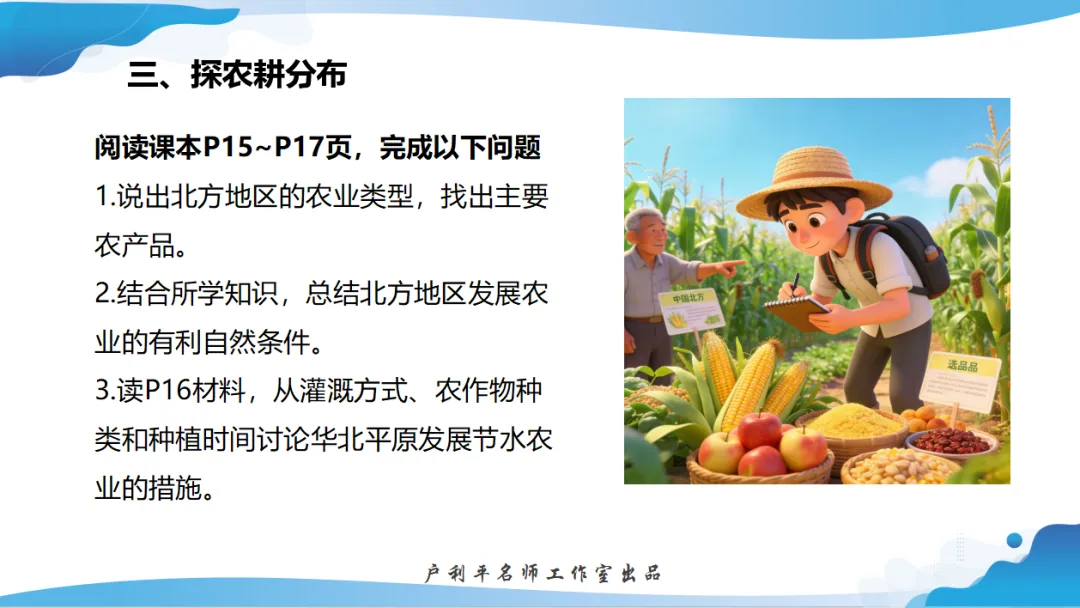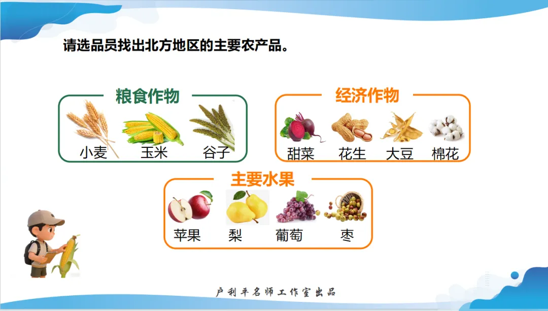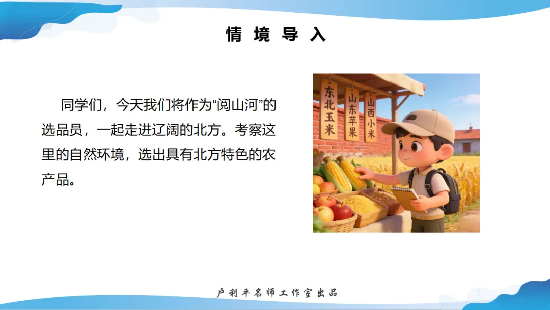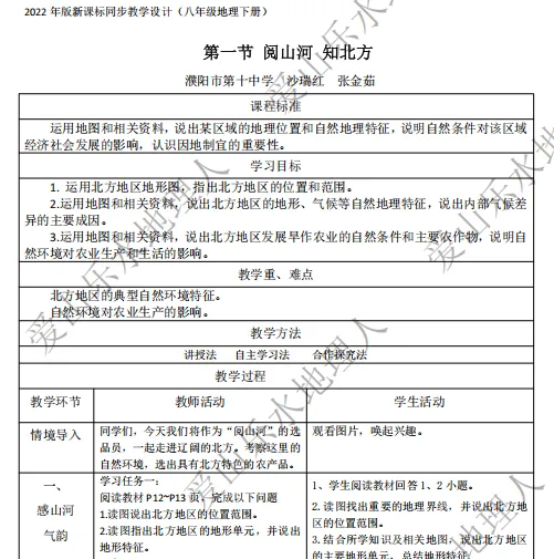 《北方地区的自然特征与农业》 由濮阳市第十中学的沙瑞红和张金茹老师共同打造。本节课以“阅山河 知北方”为主题,巧妙创设“农产品选品员”趣味情境,将课标要求转化为分层学习目标,寓教于乐。