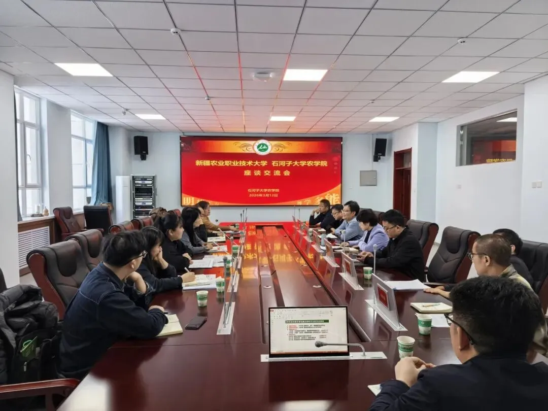 3月12日下午,石河子大学农学院与新疆农业职业技术大学座谈交流会在北苑新区理工楼214会议室举行。双方围绕科学研究、专业建设、人才培养等议题展开深入交流,共商合作发展大计。