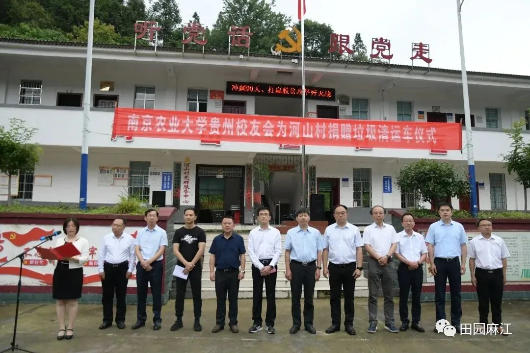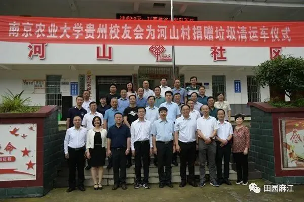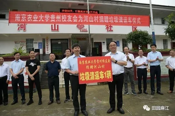 6月12日,南京农业大学贵州校友会为河山村捐赠垃圾转运车仪式在金竹街道河山村举行。南京农业大学党委书记陈利根,南京农业大学党委常委、副校长胡锋,南京农业大学党委常委、副校长丁艳锋等校领导,县人大常委会主任李文禹,县政协主席巫四德等县四大班子在家领导出席捐赠仪式。