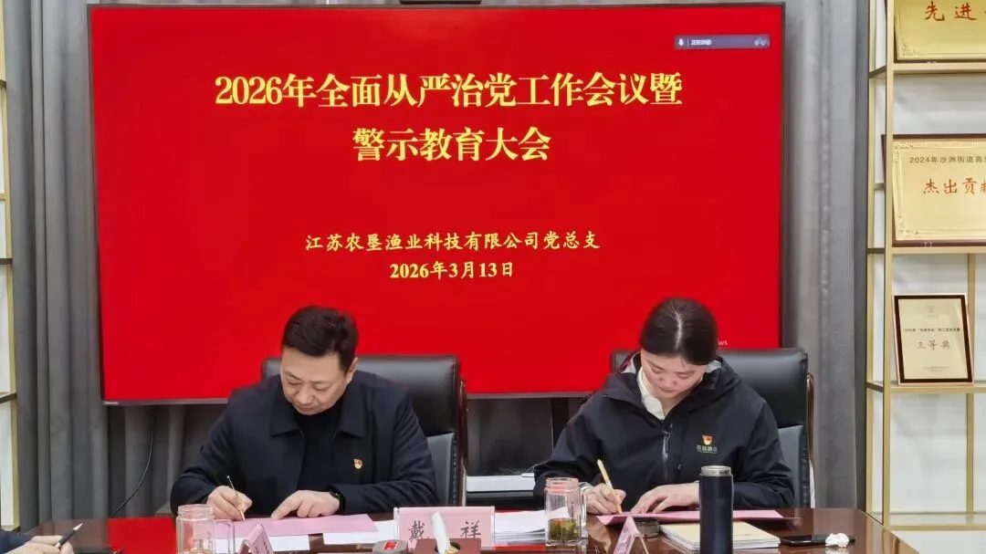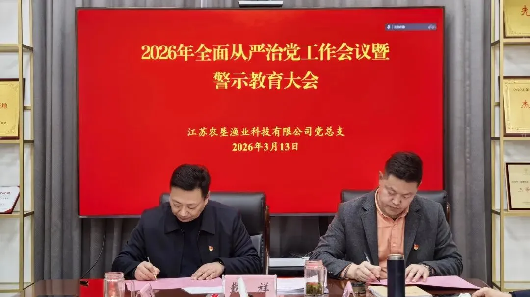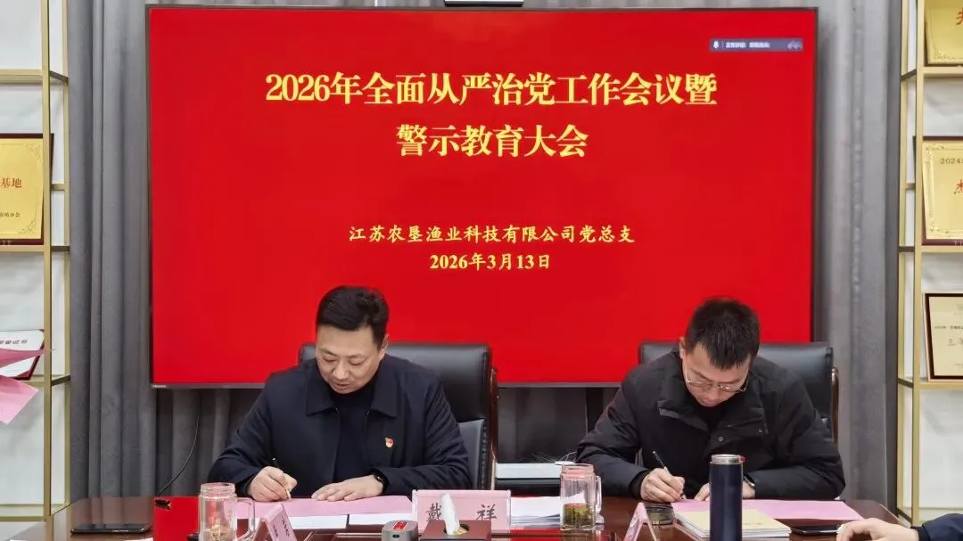 为深入贯彻落实全面从严治党要求,筑牢党员干部廉洁自律思想防线,以高质量党建引领企业高质量发展,3月13日,苏垦渔业公司召开2026年全面从严治党工作会议暨警示教育大会。会议由党总支书记、总经理戴祥主持,公司班子成员、各部门负责人及党支部委员参加会议。