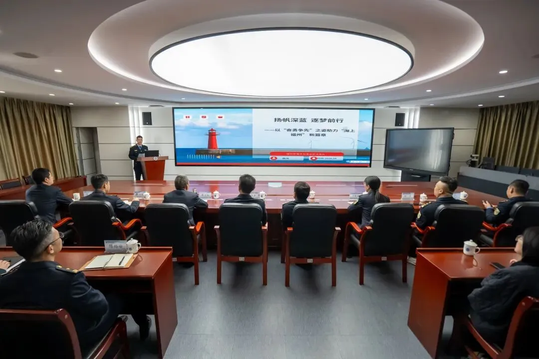 ▲福州市海洋与渔业执法支队杨鸿以《扬帆深蓝 逐梦前行——以“奋勇争先”之姿助力“海上福州”新篇章》为题,分享扎根基层一线、服务地方海洋经济发展的实干作为