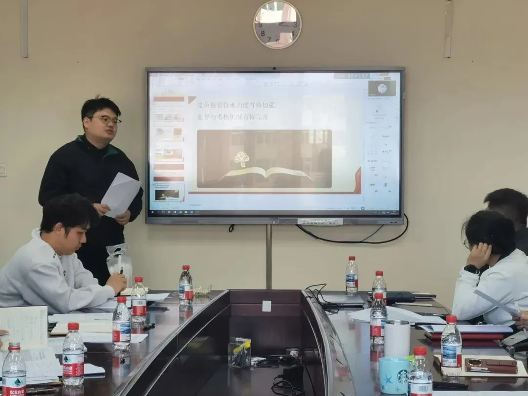 学院党委书记李铭,副院长毛学峰,党委副书记、纪委书记吕媛媛,副院长于亢亢、陈威,党委委员黄波、王翔瑞,学校党委组织部组织室主任刘畅,学院师生党支部书记、党员代表参加会议。会议由李铭主持。