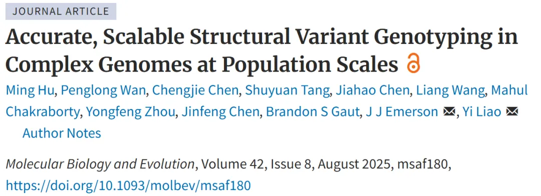 课题组开发了面向群体规模高质量基因组组装的结构变异鉴定与分型流程 SVGAP。基准测试表明,SVGAP在不同进化尺度下均表现出优于现有工具的性能,为复杂基因组区域的结构变异解析提供了有力支撑。相关成果发表于Molecular Biology and Evolution(中国科学院一区,影响因子11.9)。