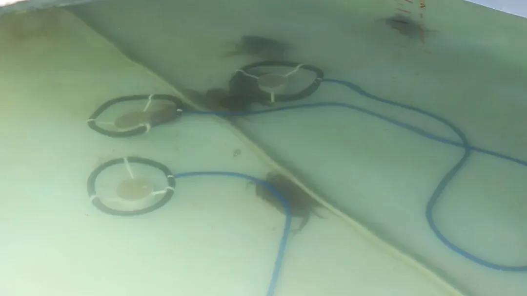 走进江苏农垦金鲤渔业有限公司的生态育苗大棚,温暖湿润的空气裹挟着淡淡的海洋气息扑面而来,技术员正在仔细观察拟穴青蟹的抱卵情况,大棚内一排排整齐的育苗池里,墨绿色富含小球藻的营养水上下翻滚,这些育苗池,通过精准调控水温、盐度,投喂轮虫等适口饵料,为拟穴青蟹幼苗营造最佳生长环境。