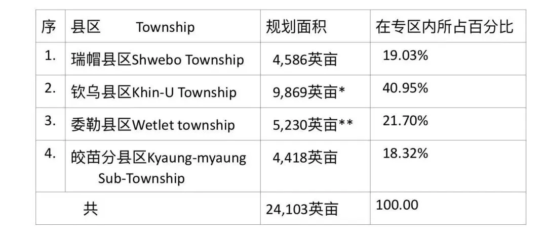 按:委勒县区所在的瑞帽专区各县区都会按季节种植各种蔬菜作物,现财年冬作物种植季节期间瑞帽专区内各县区规划种植的蔬菜作物如下:
