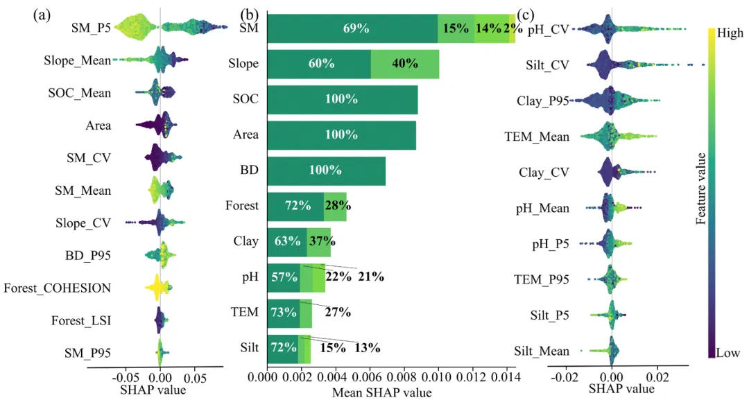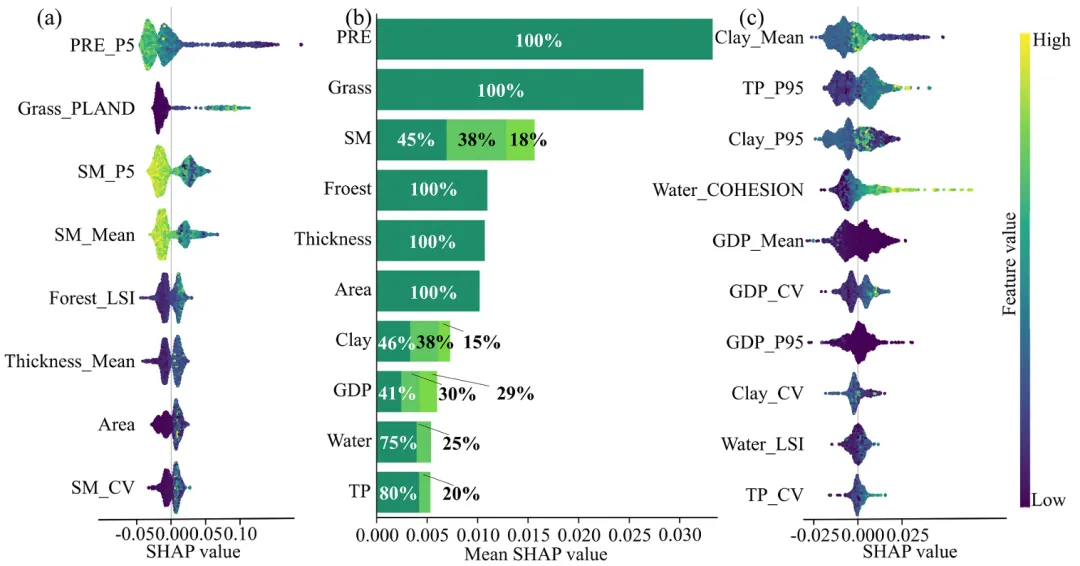,揭示降水、景观格局、土壤厚度等因子的重要性排序与调控效应。