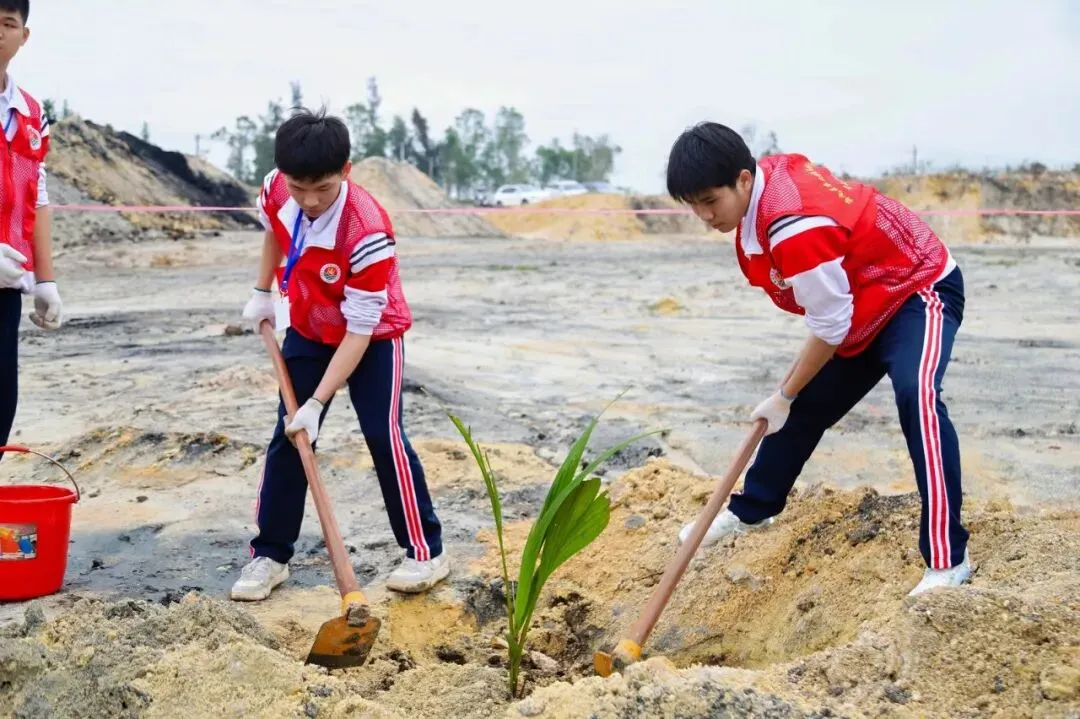 春染山海,绿满校园。2026年3月12日,在第48个植树节到来之际,海南省农业学校组织开展植树节活动,将劳动教育融入绿色实践,以实际行动践行生态担当。当日上午,海南省农业学校党委书记孙孝贵、校长张萨萨带领55名师生代表,前往新民林场长昌管护站里九坡开展义务植树。师生们挥锹培土、扶苗浇水,在春风中种下一株株象征希望的椰树苗,以实际行动履行植树义务、践行生态担当,为美丽新海南增添一抹鲜活的绿色。当日下午,全校师生共同开展“绿化校园,护绿美化”行动。从修剪花木到清理草坪,从清理操场到整理教室、实训室,师生们用双手装点校园每一个角落,让绿色在农校生根、让文明在行动中传递。此项活动将作为常态机制持续开展,让爱绿护绿成为校园日常。植树护绿不仅是生态行动,更是学校“五育并举+绿色技能”人才培养模式的生动实践。师生在出力流汗中锤炼劳动品格,在生态守护中深化绿色技能,真正将“劳动最光荣、绿色最珍贵”融入成长历程,为海南自贸港建设培育更多懂绿、爱绿、护绿的新时代技能人才。