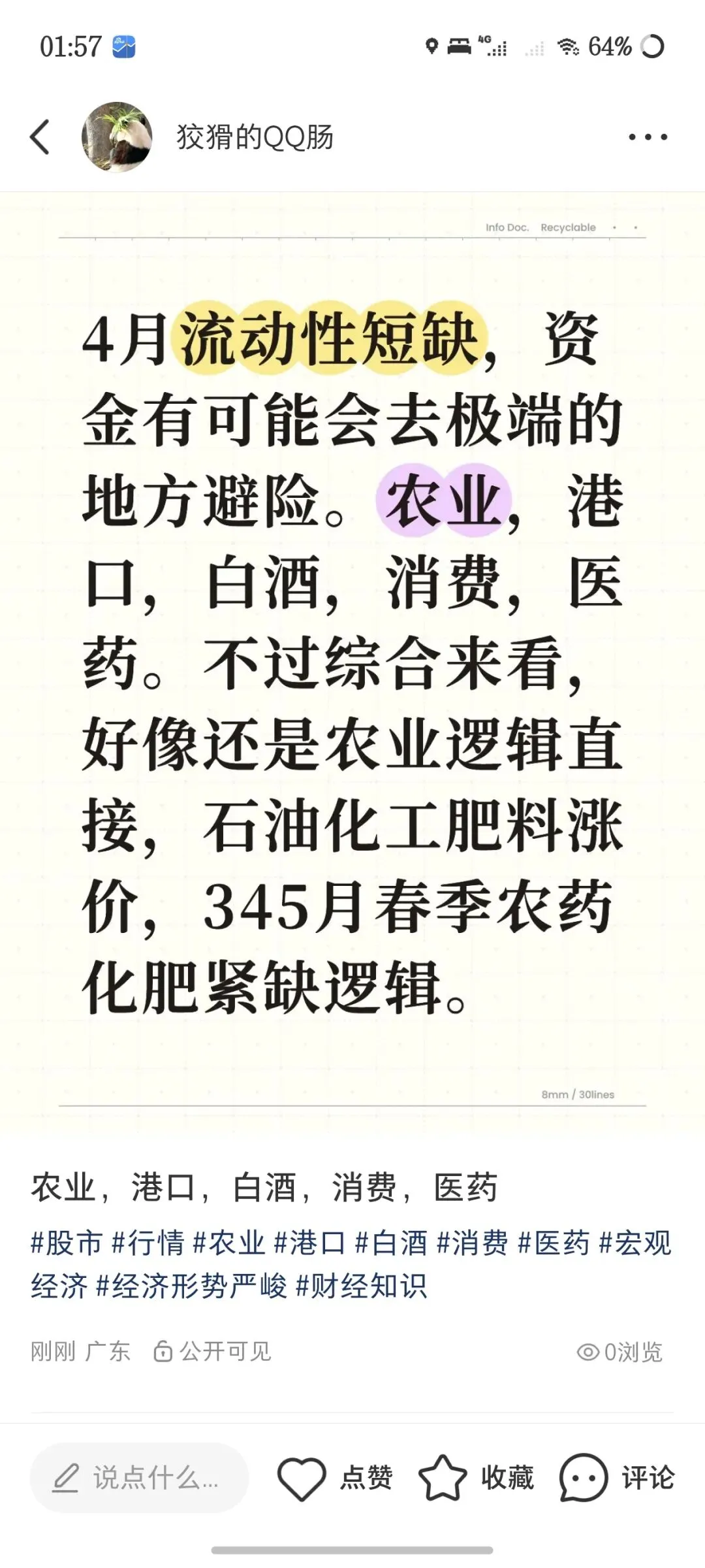 4月流动性短缺,资金有可能会去极端的地方避险。农业,港口,白酒,消费,医药。不过综合来看,好像还是农业逻辑直接,石油化工肥料涨价,345月春季农药化肥紧缺逻辑。PS:(我的小红书账号)