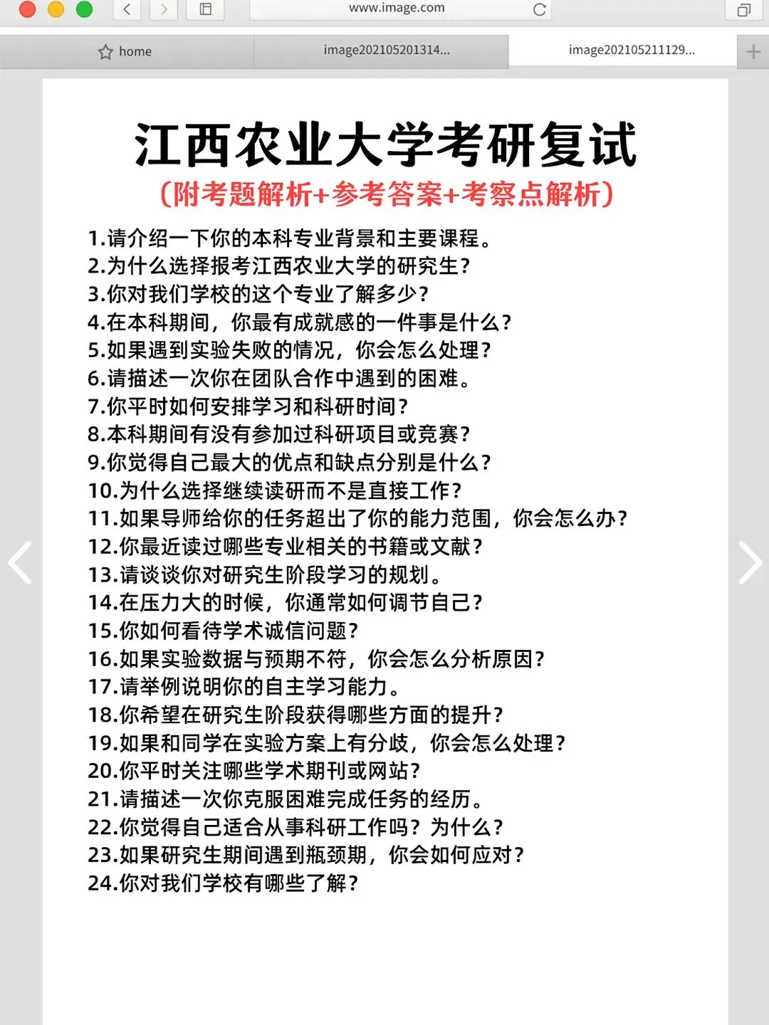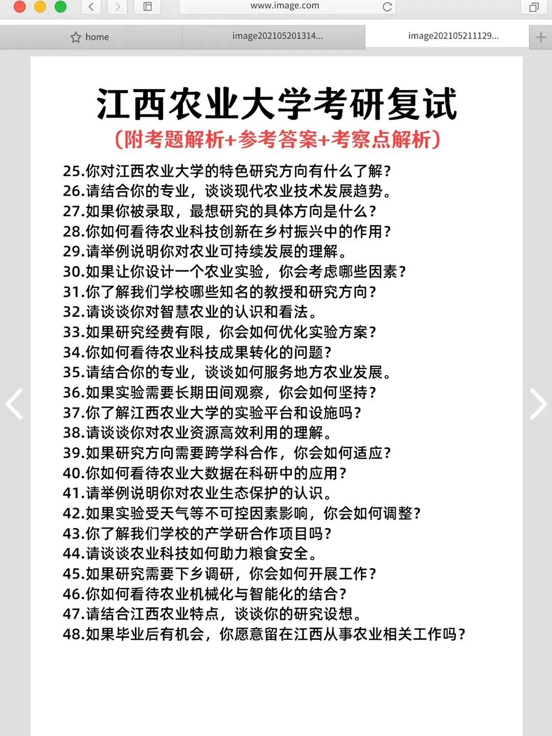 江西农业大学考研复试必看面经搜集往届珍题