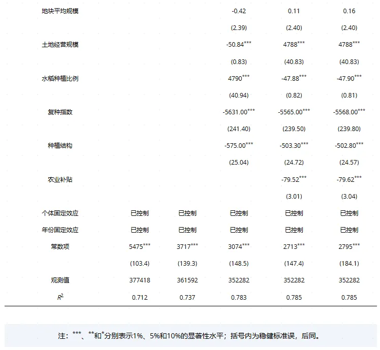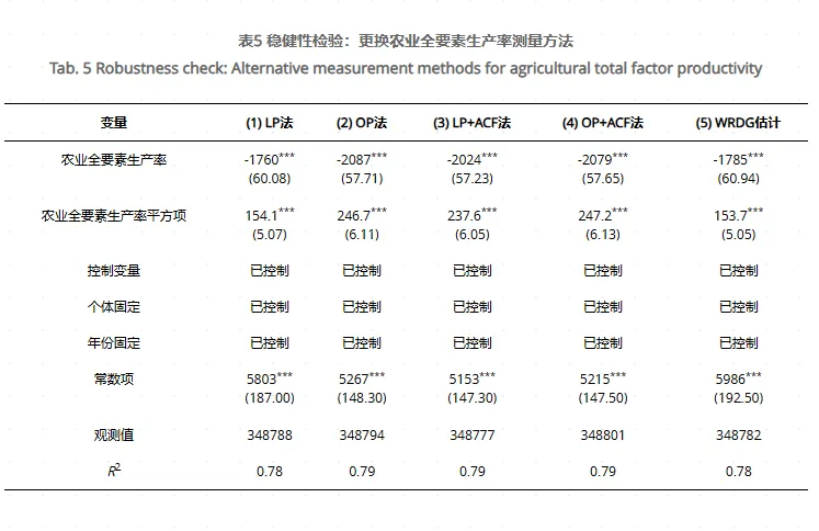 模型设定:构建双向固定效应模型检验二者非线性关系,测算最优全要素生产率拐点,并选取农户个人、土地、政策层面变量作为控制变量。