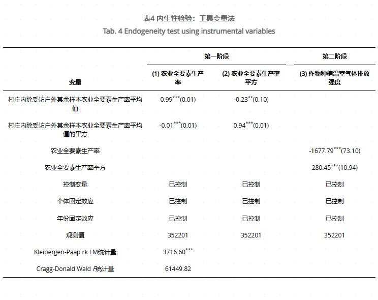 以村庄内除受访户外其余样本全要素生产率均值为工具变量,通过两阶段最小二乘法回归,结果仍验证了反弹波动特征,基准结论稳健。
