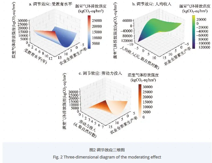 当前技术和管理模式下,农业全要素生产率与作物种植温室气体排放强度呈反弹波动特征,超过临界点后全要素生产率提升会推高排放强度;