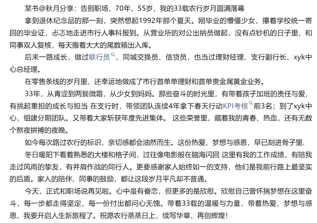 某某书退休小伙伴的分享,在农行的33年,2026年退休了,这个是从学校毕业一直在农行干了一辈子的伙伴,退休后有纪念品。
