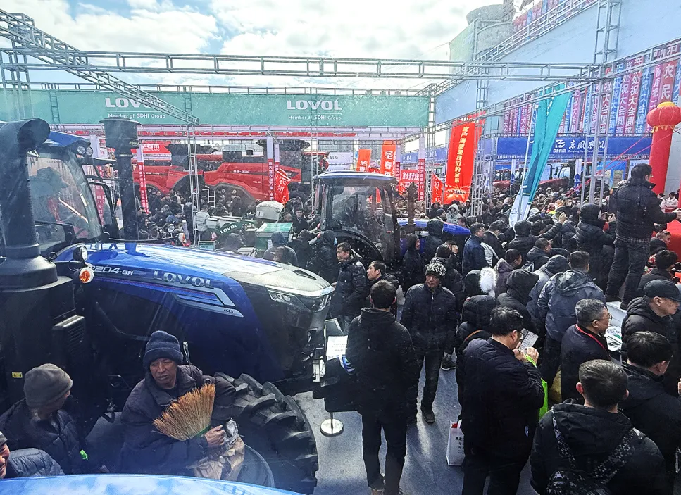 在拖拉机展区,雷沃智能拖拉机依次列阵,从动力澎湃的M系列拖拉机到代表无级变速前沿科技的CVT系列旗舰机型,全面满足黑土地规模化、集约化的作业需求。
