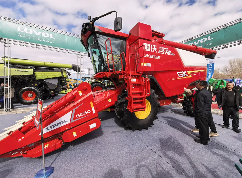 收获机械展区,针对东北区域主要粮食作物的定制化解决方案同样吸睛。雷沃谷神GK6126、CB6565、CH05等机型凭借强劲动力与高可靠性,成为用户咨询下单的热门选择。