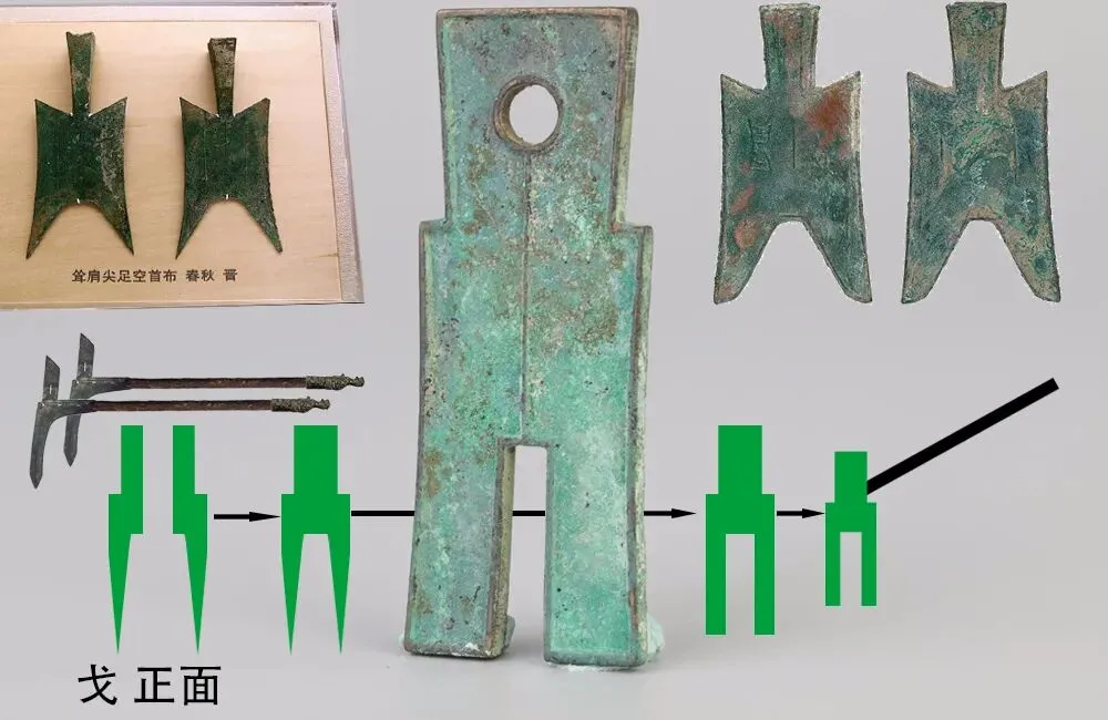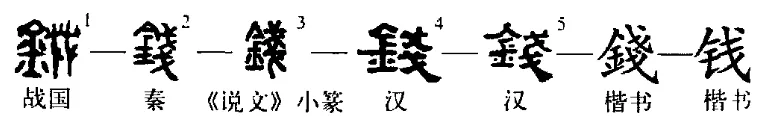 “钱”转化为货币名称后,“钱”作为农具名称也逐渐消失,取而代之的即是“铲”。