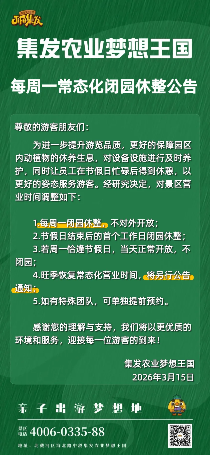 >重要通知|集发农业梦想王国每周一常态化闭园,只为更好相见!