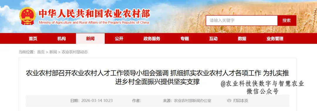 会议要求,要健全农业农村人才工作机制,强化协同联动,建强部系统人才队伍,形成事业发展和人才队伍建设统筹推进的工作合力。