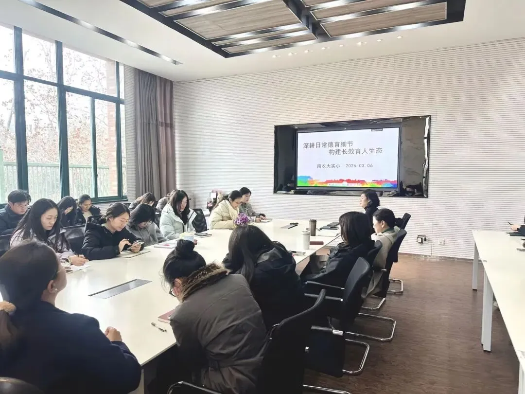 2026年3月6日下午,南京农业大学实验小学新学期第一次班主任大会在小会议室召开。本次会议以“深耕日常德育细节,构建长效育人生态”为主题,由德育处助理周朦佳老师主持,李颖副校长、德育处陆钰涵主任及全体班主任参会,为新学期德育工作、班级管理与家校共育工作明方向、定举措。