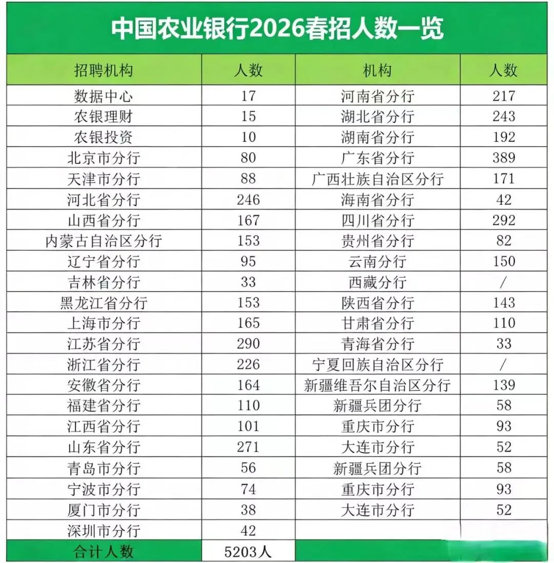 对比其他银行,农业银行今年春招招聘人数也是比较多的,且招聘机构比较全,同学们想要报考农业银行的话也可以抓紧时间准备咯!