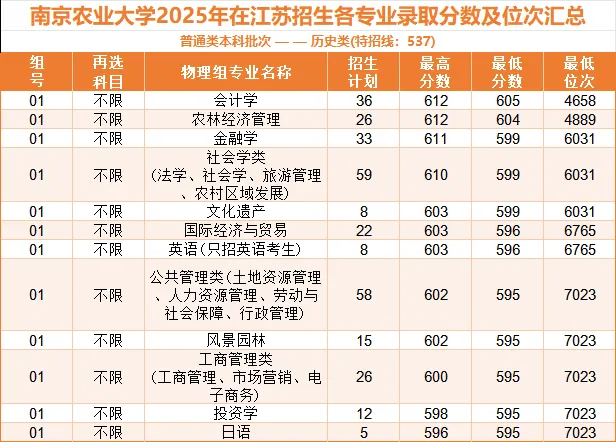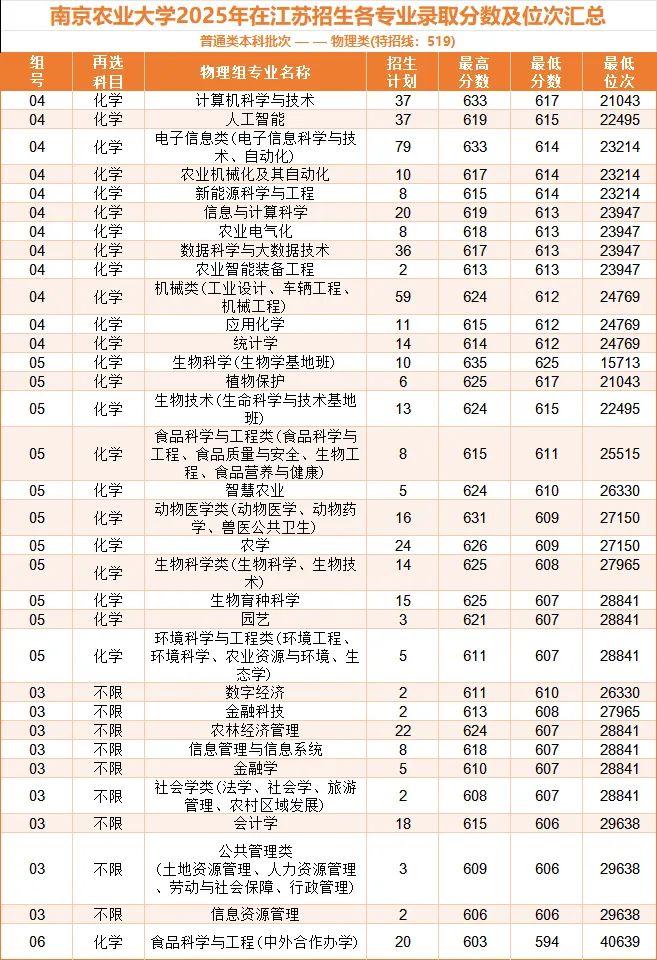 最高分635分!南京农业大学2025年普通批各专业录取分数公布!