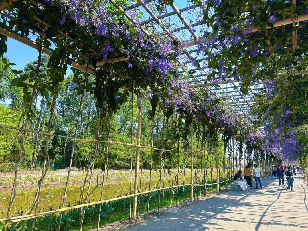 广州南沙的这条农业观光绿道最近很火,罕见的红色和蓝色藤顶让这里成了打卡网红地;公交直达村口,免费参观,最适合旅拍和家庭出游
