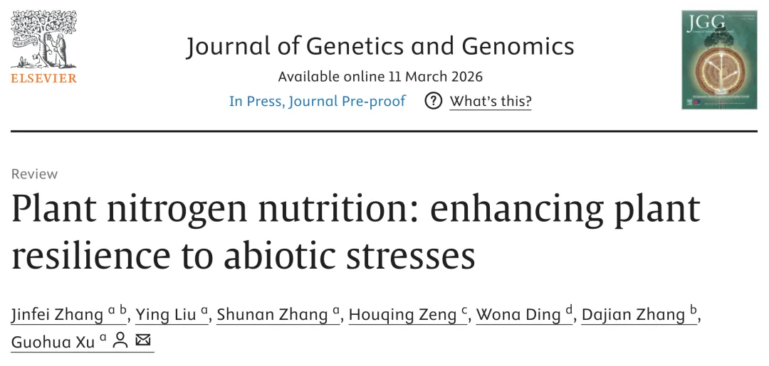 近日,Journal of Genetics and Genomics在线发表南京农业大学徐国华教授团队题为“Plant nitrogen nutrition: enhancing plant resilience to abiotic stresses”的研究论文。该文旨在系统构建这一框架,核心内容聚焦三个方面:(1)机制阐释:系统总结了不同形态氮信号如何分别与土壤酸化/铝毒、盐、旱、高温和低温胁迫信号通路发生遗传互作,以此平衡植物的生长与抗逆;(2)网络构建:梳理了氮信号整合不同胁迫应答信号的调控网络,重点关注转录调控、蛋白翻译后修饰及能量分配等关键过程;(3)应用展望:讨论了上述网络在提升作物氮素利用效率与抗逆育种中的应用前景,为应对土壤酸化、盐害、干旱和极端温度提供了新视角。
