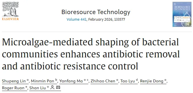 近期,环境科学与生态学期刊Bioresource Technology(影响因子=9,中科院1区TOP)发表题为“Microalgae-mediated shaping of bacterial communities enhances antibiotic removal and antibiotic resistance control”的论文。