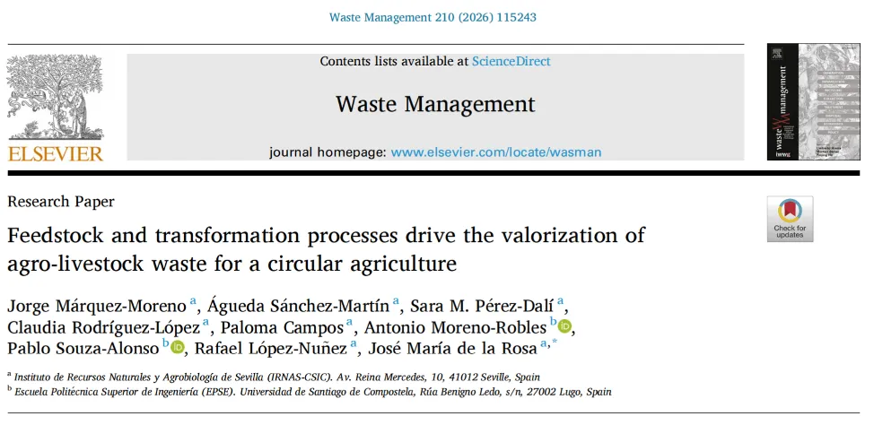 大家好!今天为大家分享一篇发表在Waste Management上的论文,题目为《Feedstock and transformation processes drive the valorization of agro-livestock waste for a circular agriculture》,通讯作者为西班牙塞维利亚自然资源与农业生物研究所的José María de la Rosa研究员。