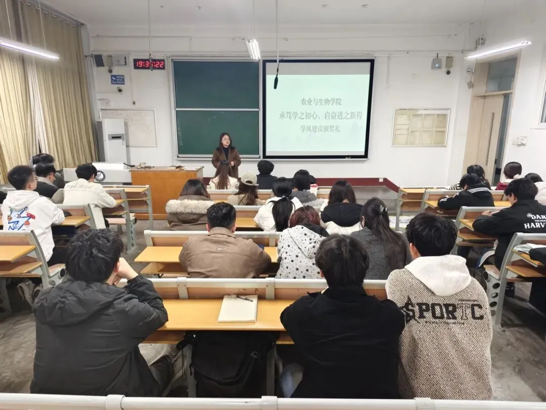 为激励广大青年学子勤学笃行、追求卓越,3月12日,农业与生物学院于2号教学楼516教室举办“承笃学之初心,启奋进之新程”学风建设总结表彰暨新学期动员会,会议由学院辅导员张玉莹主持。
