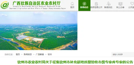 钦州市农业农村局关于征集钦州市补充耕地质量验收市级专家库专家的公告