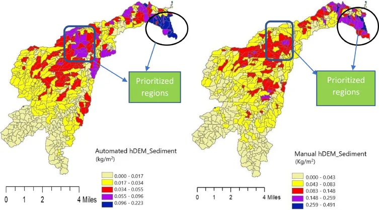 图4 自动(左)和人工(右)水力调节的泥沙来源评估