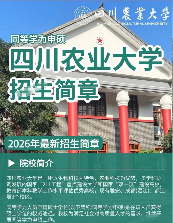 #四川农业大学同等学力申硕 #2026同等学力招生简章 #川农大在职读研 #在职硕士提升 #同等学力申硕攻略 #川农大招生简章#川师#四川师范大学#川师大#川农#四川农业大学#川农大#中南财经政法大学#中南财大#三峡大学#湖北大学#湖南中医药大学#湖南中医大#同硕#同等学历申硕#同等学历升硕#在职研究生#单证研究生#硕士研究生#研究生#免试入学#在职读研##在职硕士#医学研究生